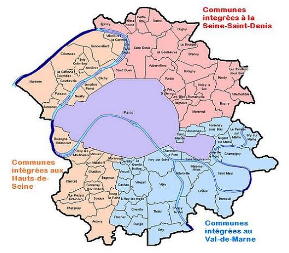 Voici-ci dessous la carte du Grand Paris de