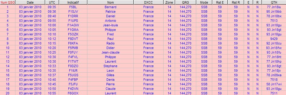 Voici ci-dessous le Log des quelques QSO effectués