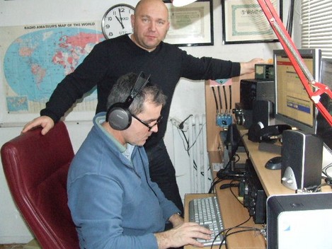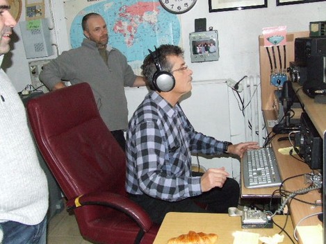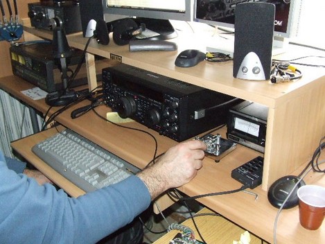Démarrage du contest par Misho F8GGV à 07:00 locale. A l’arrivée vers dix heures comme prévu de Christian F8GGO, Misho avait déjà enregistré pas loin de 240 contacts !  arrivée par la suite de Eric F5RPN, Xavier F5NTZ. On se remplace tour à tour derrière le manip. Le keyer automatique ne fonctionne pas bien. nous sommes obligés de lancer appel et de répondre à la main ce qui nous ralentit un peu.