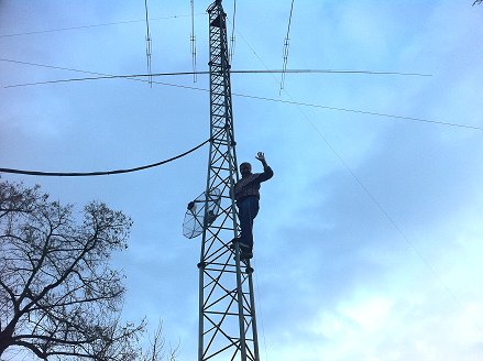 21 et 28 MHz, et une boite de couplage MFJ avec une Delta-Loop pour les bandes basses, ainsi qu'une