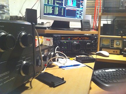 à savoir, un émetteur FT-1000MP avec un antenne KLM KT-34A pour le 14,