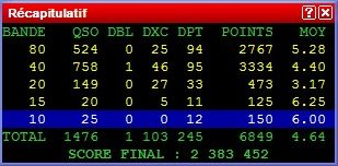 au dimanche soir : 1476 QSO (l'objectif était atteint, avec en prime,