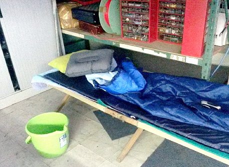 nuit sur place (lit de camp).