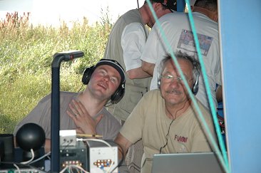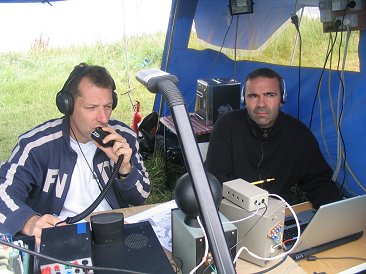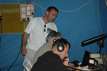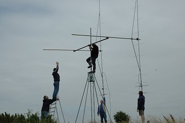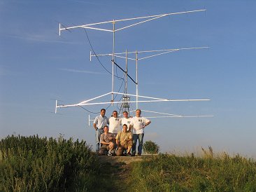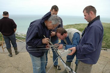 Jean-Louis F1AGW et accroupie, Vincent F5SLD et Fred F5OZK.