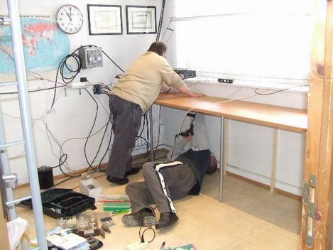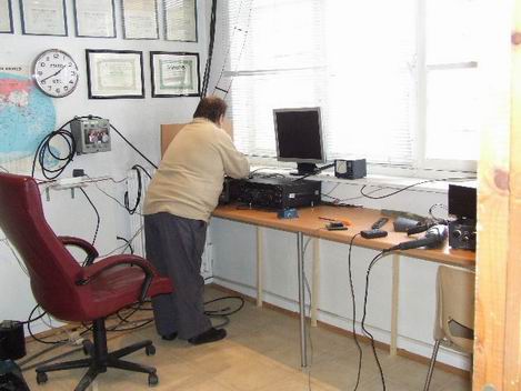 hors du local radio pour faciliter les travaux. Eric F0GYN notre maître