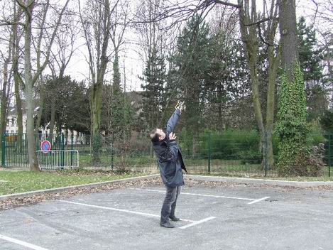 train d'aider Paul sur le parking de la mairie à retendre l'antenne