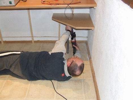 et perçage des tasseaux qui soutiendront le plan de travail. |