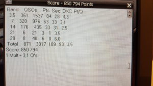 A la fin de la journée, le score était malgré tout correct avec 871 QSO et la presque totalité des départements contactés (hormis les DOM/TOM très compliqués cette année).