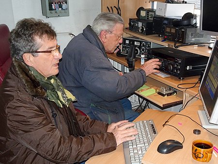 Bravant le froid (-3deg) Jean F1BGY était présent dès le début du Samedi matin. Tout d’abord, il a mis en route un bon café chaud, puis, par précaution, avant d’appuyer sur la pédale du micro, il a contrôlé les antennes au MFJ. Là, grosse surprise !! Il s’est retrouvé avec la PL de la KT34 dessoudée !! L’incident réglé le trafic a démarré sur la bande des 80m. Rapidement les QSO rentraient dans le Log. Rien de surprenant à ce moment de la compétition, car les prétendants au trophée se jettent sur tout ce qui bouge, comme s’ils avaient été privés de contact radio depuis longtemps.