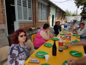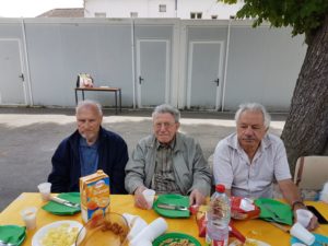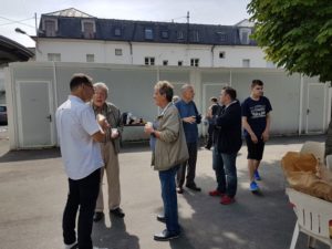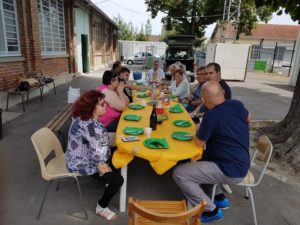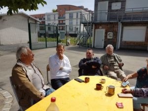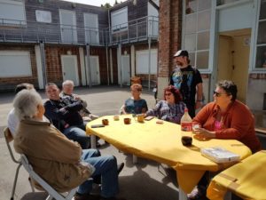 Le soleil étant au rendez-vous, nous avons pu nous installer dans la cours ce qui est tout de même plus sympathique que de rester enfermé toute une journée à l’intérieur.