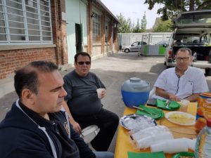 Durant l’après-midi, tout le monde était ravi de revoir Fred F5OZK et chacun a pu échanger un instant avec lui. D’autres en ont aussi profités pour activer la station, et nous entendions le dah dih dah dih de la CW rendu un peu plus léger par le rosé.